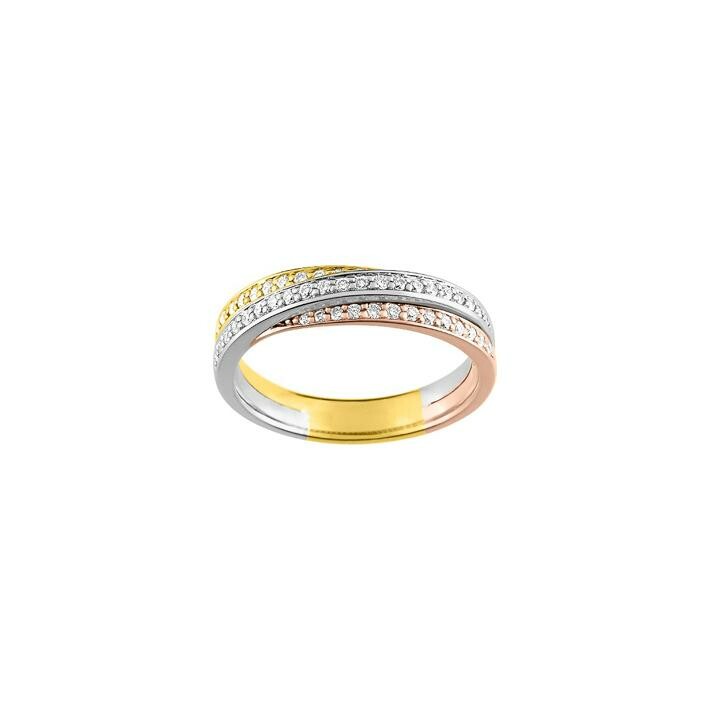 Alliance croisée en or jaune, or rose et or blanc