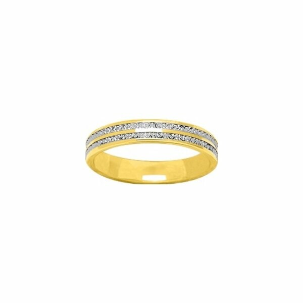 Alliance diamantée en or jaune, or blanc