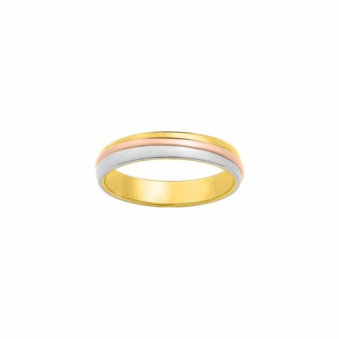 Alliance lisse en or jaune, or rose et or blanc