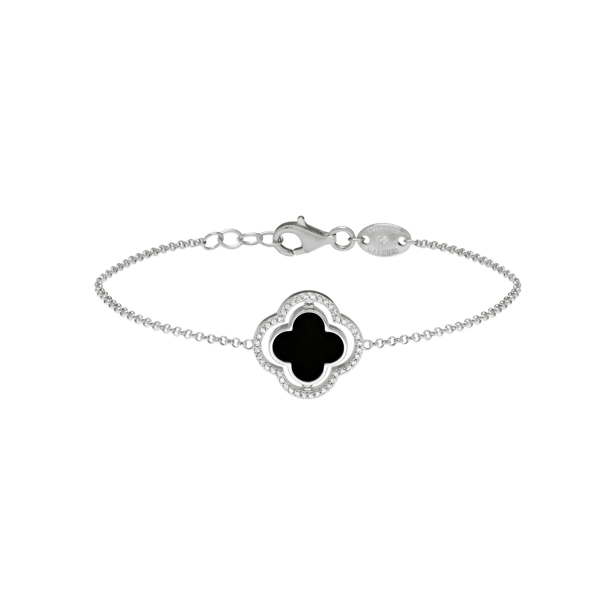 Bracelet réversible Charles Garnier en argent, oxyde de zirconium, nacre et onyx