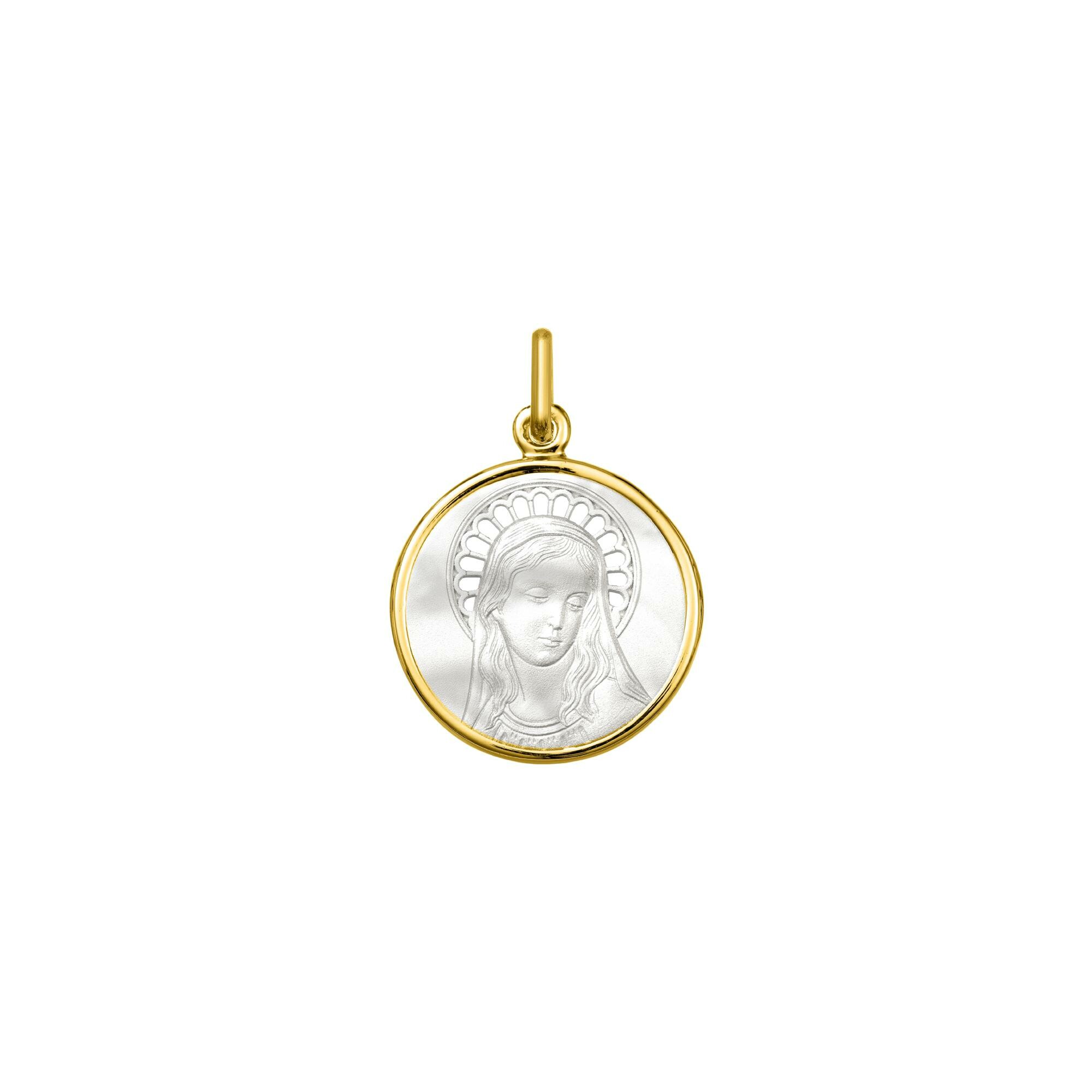 Médaille Vierge couronnée en or jaune et nacre