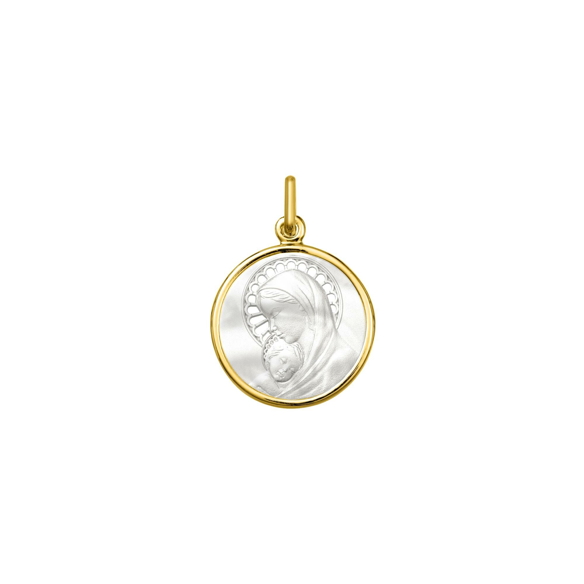 Médaille Vierge en or jaune et nacre